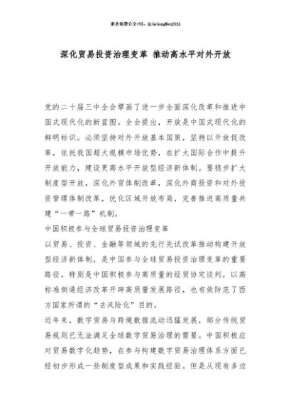 / 【七哥公文】2025年:深化贸易投资治理变革 推动高水平对外开放_副本+更多免费公文+VX:QiGeGongWen2024
