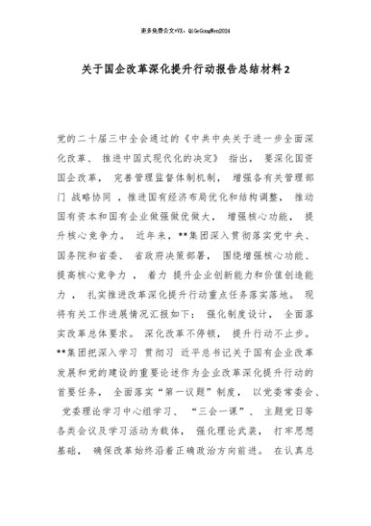 / 【七哥公文】2025年:关于国企改革深化提升行动报告总结材料2_副本+更多免费公文+VX:QiGeGongWen2024