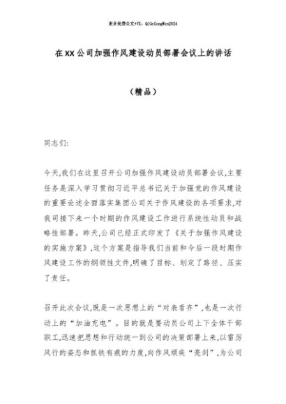 【七哥公文】2025年:在XX公司加强作风建设动员部署会议上的讲话(精品)_副本+更多免费公文+VX:QiGeGongWen2024