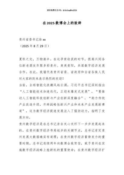 / 【七哥公文】2025年:在2025数博会上的致辞_副本+更多免费公文+VX:QiGeGongWen2024