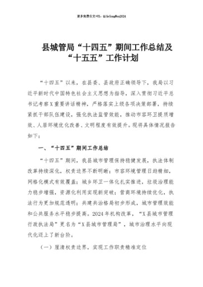 【七哥公文】2025年:县城管局“十四五”期间工作总结及“十五五”工作计划+更多免费公文+VX:QiGeGongWen2024