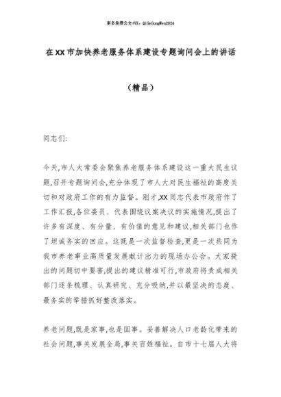 【七哥公文】2025年:在XX市加快养老服务体系建设专题询问会上的讲话(精品)_副本+更多免费公文+VX:QiGeGongWen2024