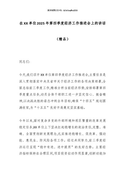 【七哥公文】2025年:在XX单位2025年第四季度经济工作推进会上的讲话(精品)_副本+更多免费公文+VX:QiGeGongWen2024