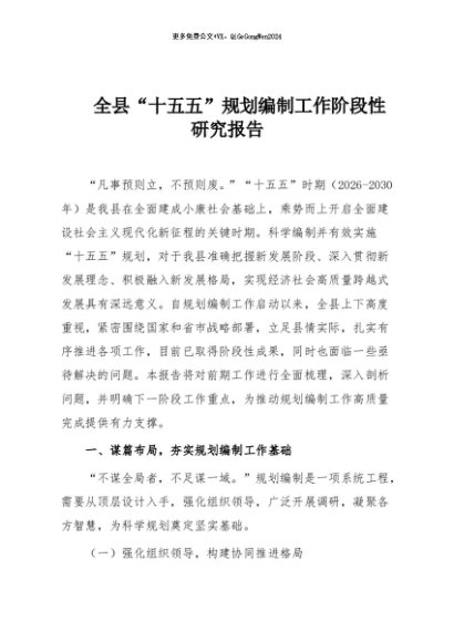 / 【七哥公文】2025年:全县“十五五”规划编制工作阶段性研究报告+更多免费公文+VX:QiGeGongWen2024