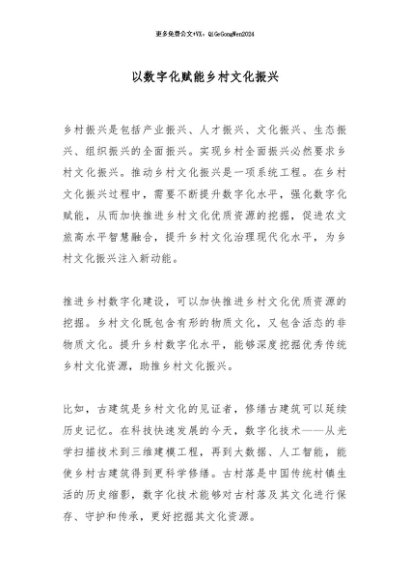 / 【七哥公文】2025年:以数字化赋能乡村文化振兴_副本+更多免费公文+VX:QiGeGongWen2024