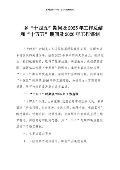 【七哥公文】2025年:乡“十四五”期间及2025年工作总结和“十五五”期间及2026年工作谋划+更多免费公文+VX:QiGeGongWen2024