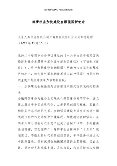 / 【七哥公文】2025年:挺膺担当加快建设金融强国新使命_副本+更多免费公文+VX:QiGeGongWen2024