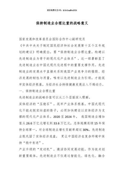 / 【七哥公文】2025年:保持制造业合理比重的战略意义_副本+更多免费公文+VX:QiGeGongWen2024