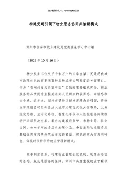 / 【七哥公文】2025年:构建党建引领下物业服务协同共治新模式_副本+更多免费公文+VX:QiGeGongWen2024