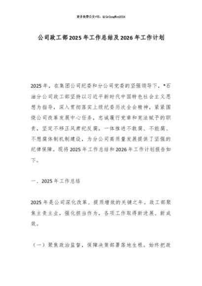【七哥公文】2025年:公司政工部2025年工作总结及2026年工作计划_副本+更多免费公文+VX:QiGeGongWen2024