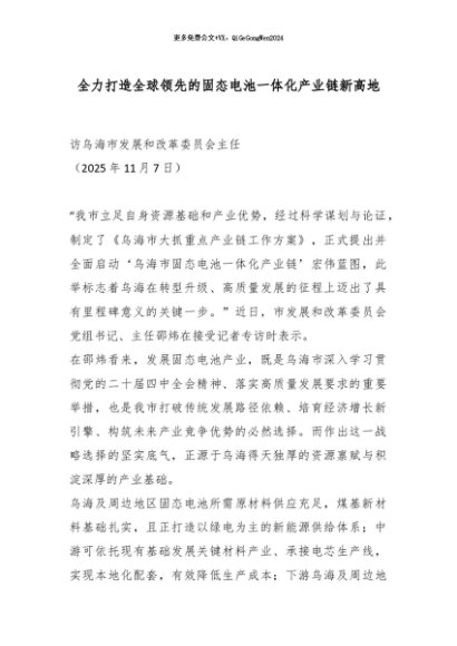 【七哥公文】2025年:全力打造全球领先的固态电池一体化产业链新高地_副本+更多免费公文+VX:QiGeGongWen2024