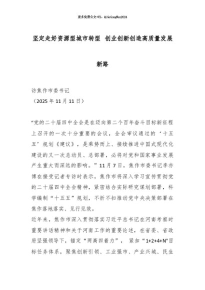 【七哥公文】2025年:坚定走好资源型城市转型创业创新创造高质量发展新路_副本+更多免费公文+VX:QiGeGongWen2024