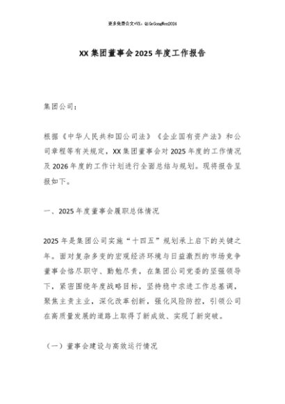 / 【七哥公文】2025年:XX集团董事会2025年度工作报告_副本+更多免费公文+VX:QiGeGongWen2024