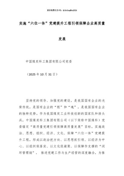 【七哥公文】2025年:实施“六位一体”党建提升工程引领保障企业高质量发展_副本+更多免费公文+VX:QiGeGongWen2024