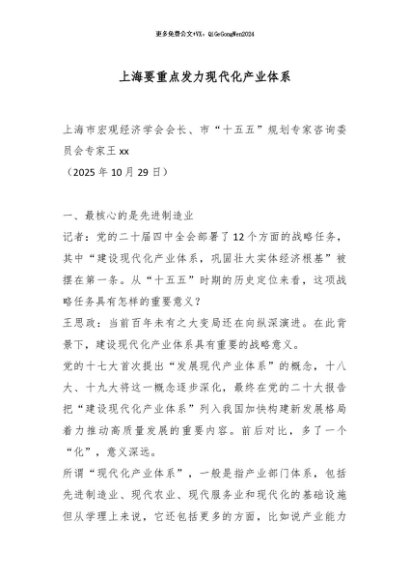 / 【七哥公文】2025年:上海要重点发力现代化产业体系_副本+更多免费公文+VX:QiGeGongWen2024