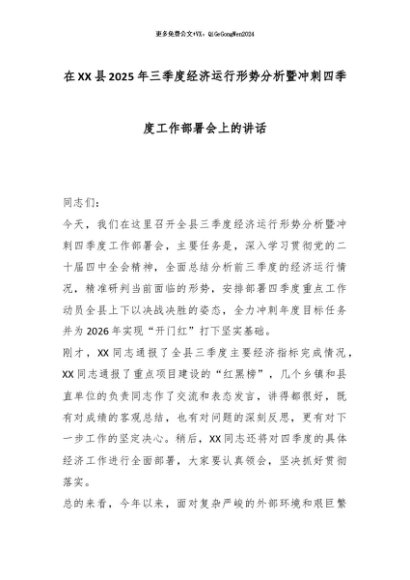 【七哥公文】2025年:在XX县2025年三季度经济运行形势分析暨冲刺四季度工作部署会上的讲话_副本+更多免费公文+VX:QiGeGongWen2024