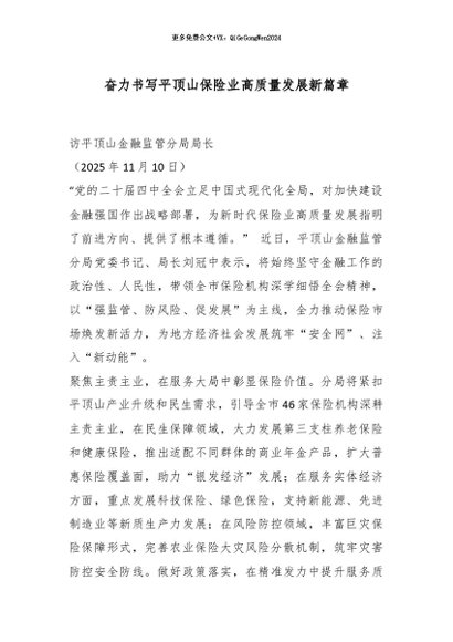 / 【七哥公文】2025年:奋力书写平顶山保险业高质量发展新篇章_副本+更多免费公文+VX:QiGeGongWen2024