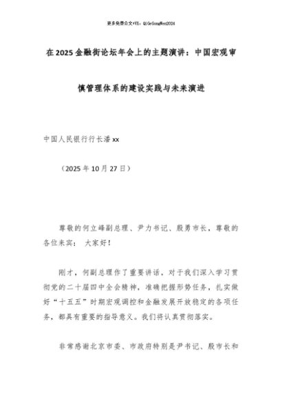 【七哥公文】2025年:在2025金融街论坛年会上的主题演讲:中国宏观审慎管理体系的建设实践与未来演进_副本+更多免费公文+VX:QiGeGongWen2024