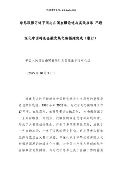 【七哥公文】2025年:学思践悟总书记同志在闽金融论述与实践启示 不断深化中国特色金融发展之路福建实践(银行)_副本+更多免费公文+VX:QiGeGongWen2024