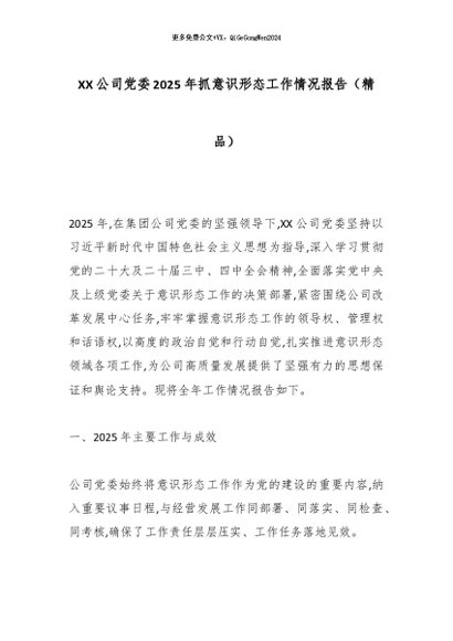 【七哥公文】2025年:XX公司党委2025年抓意识形态工作情况报告(精品)_副本+更多免费公文+VX:QiGeGongWen2024