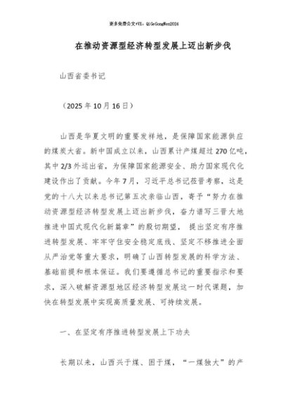 【七哥公文】2025年:在推动资源型经济转型发展上迈出新步伐_副本+更多免费公文+VX:QiGeGongWen2024