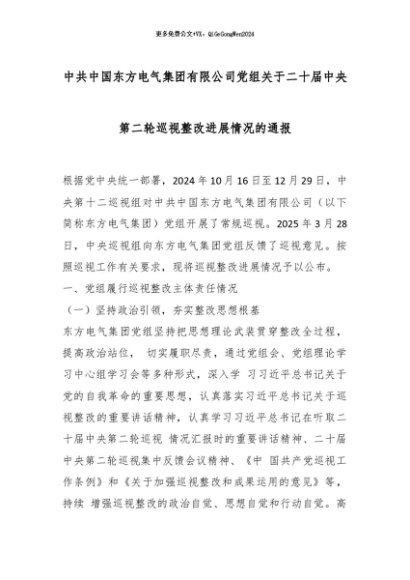 【七哥公文】2025年:中共中国东方电气集团有限公司党组关于二十届中央第二轮巡视整改进展情况的通报_副本+更多免费公文+VX:QiGeGongWen2024
