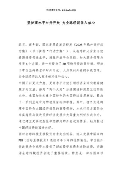 / 【七哥公文】2025年:坚持高水平对外开放 为全球经济注入信心_副本+更多免费公文+VX:QiGeGongWen2024