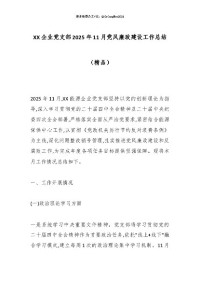 【七哥公文】2025年:XX企业党支部2025年11月党风廉政建设工作总结(精品)_副本+更多免费公文+VX:QiGeGongWen2024