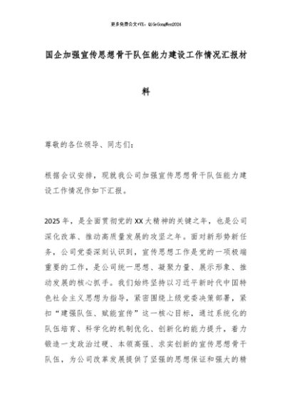 【七哥公文】2025年:国企加强宣传思想骨干队伍能力建设工作情况汇报材料_副本+更多免费公文+VX:QiGeGongWen2024