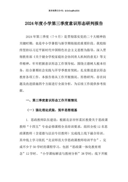 / 【七哥公文】2025年:2024年度小学第三季度意识形态研判报告_副本+更多免费公文+VX:QiGeGongWen2024