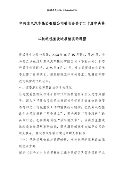 【七哥公文】2025年:中共东风汽车集团有限公司委员会关于二十届中央第二轮巡视整改进展情况的通报_副本+更多免费公文+VX:QiGeGongWen2024