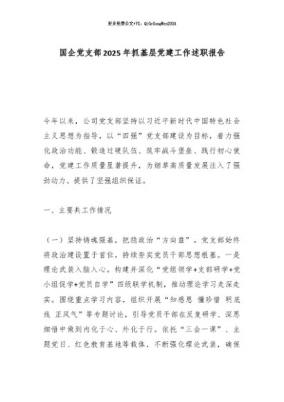 【七哥公文】2025年:国企党支部2025年抓基层党建工作述职报告_副本+更多免费公文+VX:QiGeGongWen2024