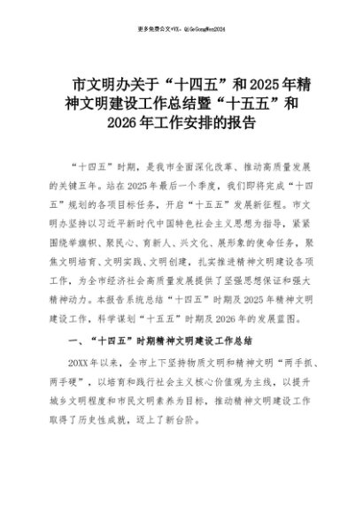 【七哥公文】2025年:市文明办关于“十四五”和2025年精神文明建设工作总结暨“十五五”和2026年工作安排的报告+更多免费公文+VX:QiGeGongWen2024