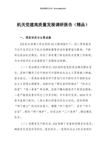 / 【七哥公文】2025年:机关党建高质量发展调研报告(精品)+更多免费公文+VX:QiGeGongWen2024