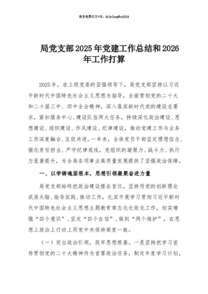 【七哥公文】2025年:局党支部2025年党建工作总结和2026年工作打算+更多免费公文+VX:QiGeGongWen2024
