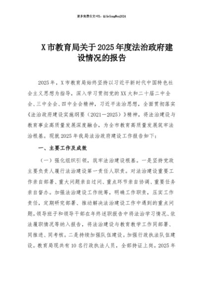 / 【七哥公文】2025年:X市教育局关于2025年度法治政府建设情况的报告+更多免费公文+VX:QiGeGongWen2024