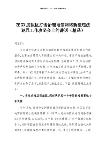 【七哥公文】2025年:在XX度假区打击治理电信网络新型违法犯罪工作攻坚会上的讲话(精品)+更多免费公文+VX:QiGeGongWen2024