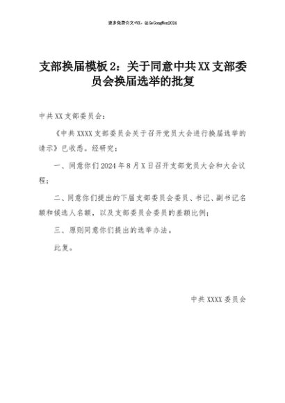 【七哥公文】2025年:支部换届模板2:关于同意中共XX支部委员会换届选举的批复+更多免费公文+VX:QiGeGongWen2024