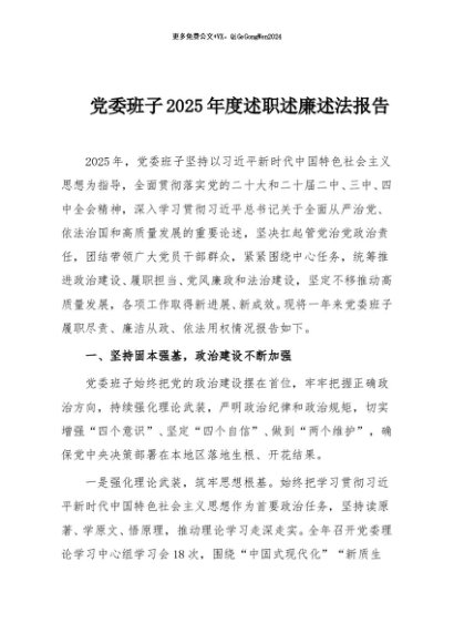 / 【七哥公文】2025年:党委班子2025年度述职述廉述法报告+更多免费公文+VX:QiGeGongWen2024