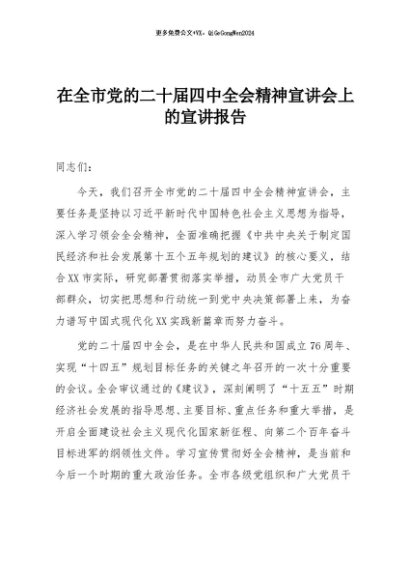 / 【七哥公文】2025年:在全市党的二十届四中全会精神宣讲会上的宣讲报告+更多免费公文+VX:QiGeGongWen2024