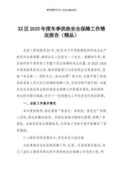 【七哥公文】2025年:XX区2025年度冬季供热安全保障工作情况报告(精品)+更多免费公文+VX:QiGeGongWen2024