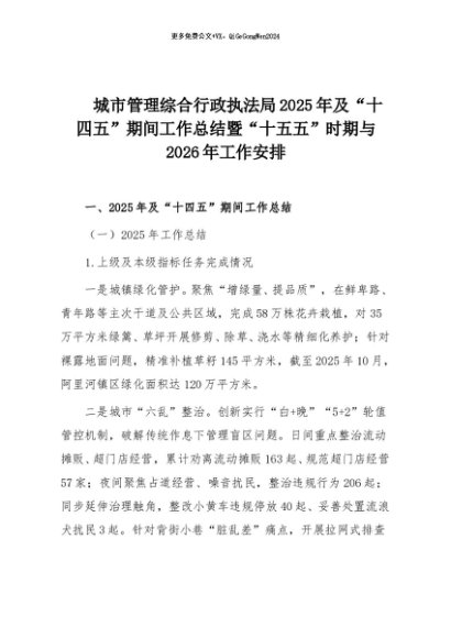 【七哥公文】2025年:城市管理综合行政执法局2025年及“十四五”期间工作总结暨“十五五”时期与2026年工作安排+更多免费公文+VX:QiGeGongWen2024