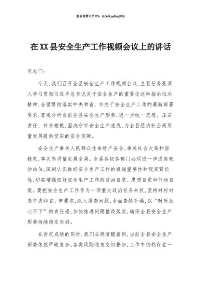 / 【七哥公文】2025年:在XX县安全生产工作视频会议上的讲话+更多免费公文+VX:QiGeGongWen2024