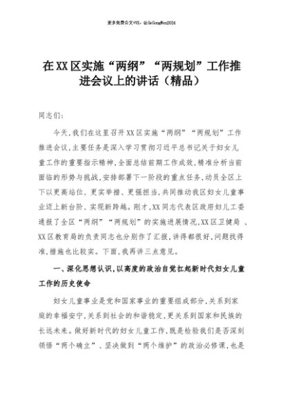 【七哥公文】2025年:在XX区实施“两纲”“两规划”工作推进会议上的讲话(精品)+更多免费公文+VX:QiGeGongWen2024