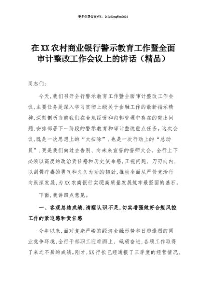 【七哥公文】2025年:在XX农村商业银行警示教育工作暨全面审计整改工作会议上的讲话(精品)+更多免费公文+VX:QiGeGongWen2024