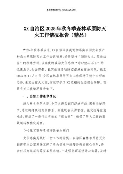 【七哥公文】2025年:XX自治区2025年秋冬季森林草原防灭火工作情况报告(精品)+更多免费公文+VX:QiGeGongWen2024