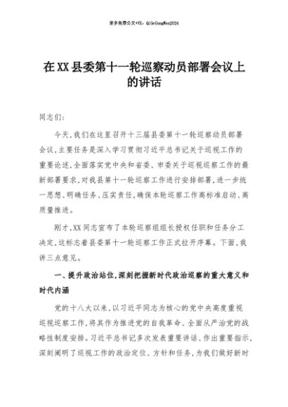 / 【七哥公文】2025年:在XX县委第十一轮巡察动员部署会议上的讲话+更多免费公文+VX:QiGeGongWen2024