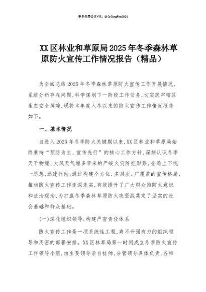 【七哥公文】2025年:XX区林业和草原局2025年冬季森林草原防火宣传工作情况报告(精品)+更多免费公文+VX:QiGeGongWen2024