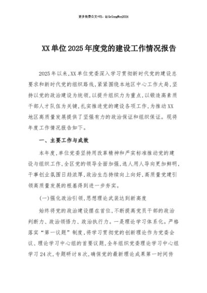 / 【七哥公文】2025年:XX单位2025年度党的建设工作情况报告+更多免费公文+VX:QiGeGongWen2024