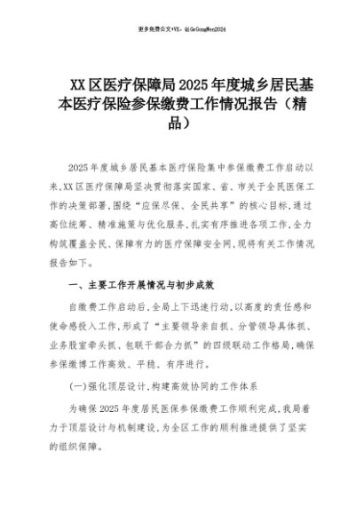 【七哥公文】2025年:XX区医疗保障局2025年度城乡居民基本医疗保险参保缴费工作情况报告(精品)+更多免费公文+VX:QiGeGongWen2024